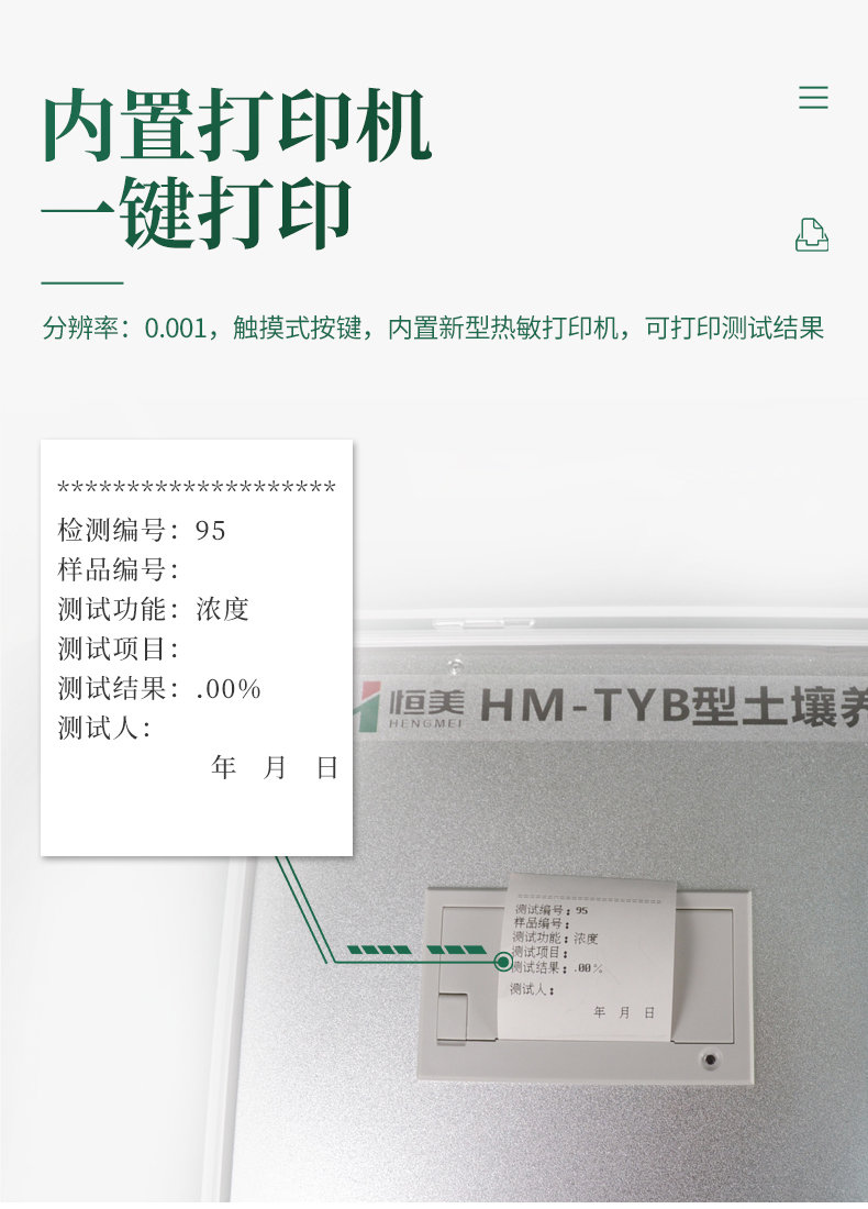 16.數(shù)據(jù)查詢打印:測試數(shù)據(jù)可存儲、查詢、打印,內(nèi)置新型一鍵式熱敏打印機